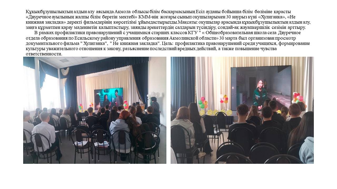 «АҚМОЛА ОБЛЫСЫ БІЛІМ БАСҚАРМАСЫНЫҢ ЕСІЛ АУДАНЫНДАҒЫ ДВУРЕЧНОЕ АУЫЛЫНДАҒЫ ЖАЛПЫ БІЛІМ БЕРУ МЕКТЕП» КМM
